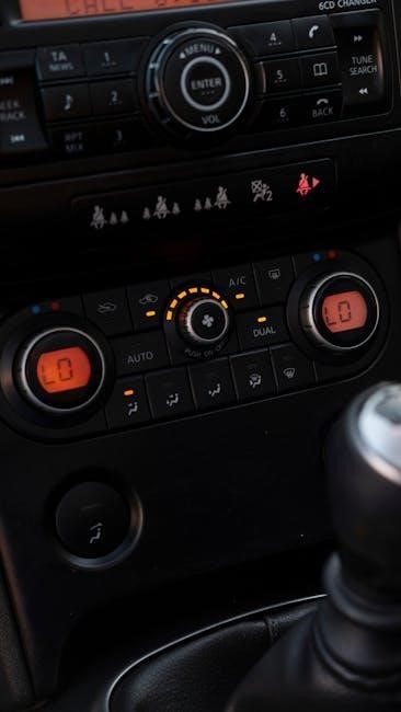 The 2011 Nissan Rogue’s climate control system is designed to provide optimal comfort for both driver and passengers․ It typically features separate controls for temperature, fan speed, and airflow direction, allowing personalized adjustments․ Automatic climate control, if equipped, maintains a set temperature automatically․